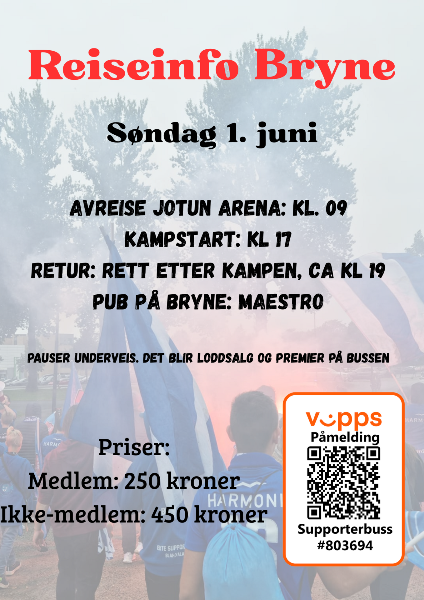 Det nærmer seg også turen til Bryne. Vi håper at enda flere blir med på tur med medsupportere. Under kan dere se reiseplanen.