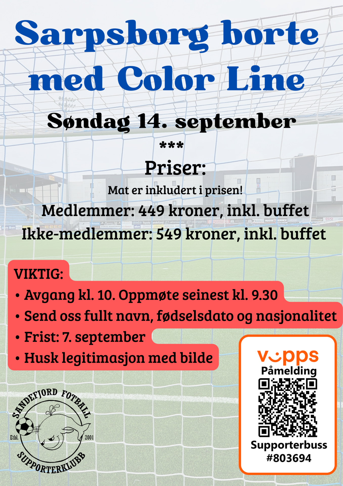 Vi skal på tur igjen 14. september. Da er det bortekamp i Sarpsborg som venter oss og vi setter opp to busser til denne kampen: